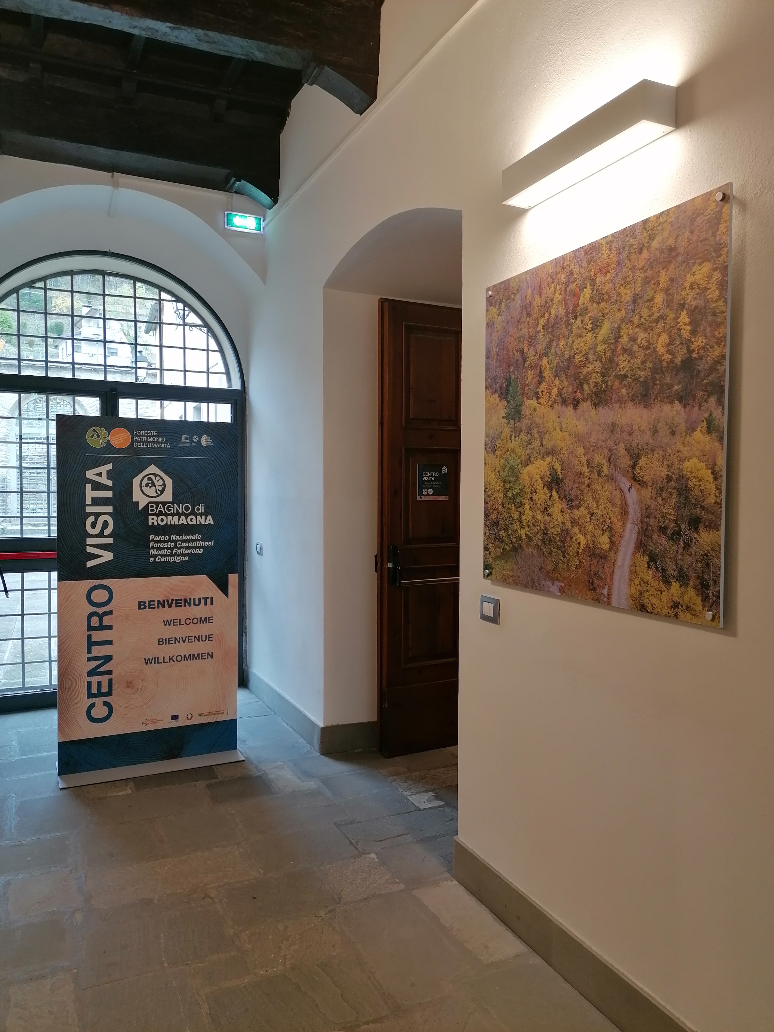 Bagno di Romagna è, fin dall’epoca romana, un centro termale di notevole importanza; da qui deriva il tema principale del Centro Visita: “La geologia e il termalismo “. Il Centro Visita si trova nella centralissima Via Fiorentina, all’interno del suggestivo Palazzo del Capitano. Al piano terra si possono ammirare Un grande Faggio, tra i cui rami trovano posto le sagome di alcuni uccelli tipici delle faggete, il plastico del Parco, con le forme del territorio e la rete idrografica dei due versanti. Al primo piano la Stanza delle suggestioni permette di immergersi in un ambiente dominato dall’acqua, mentre la Stanza dell’apprendimento insegna a conoscere la realtà del Parco attraverso L’Armadio dei suoni e dei segni. Vi sono anche modelli, plastici e allestimenti interattivi, particolarmente interessanti dal punto di vista comunicativo e adatti all’apprendimento delle tematiche quali la geologia e il termalismo anche a scolaresche e bambini.